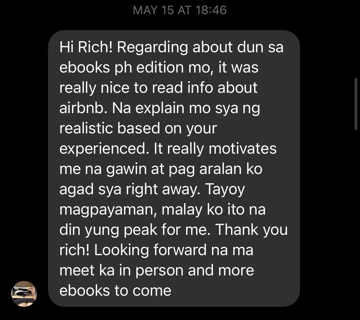 And for only β±888, you will learn a lot from my experience and avail my eBook. The best part? Once you avail the eBook, automatically youβll have 1 free raffle entry for a chance to win a fully furnished overlooking cabin perfect for Airbnb.
